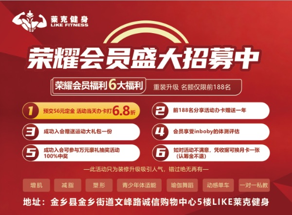金乡莱克健身健身卡优惠出售 | ||