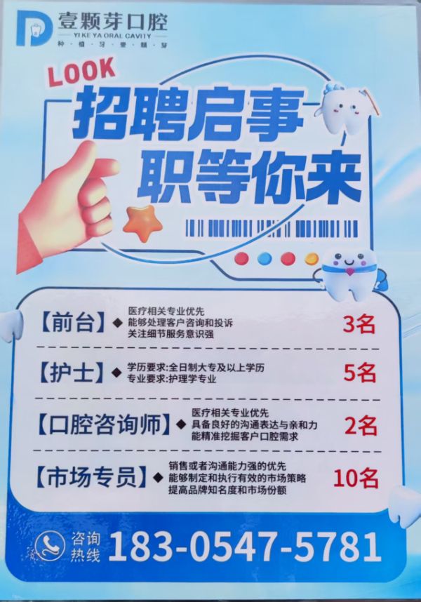 | 壹颗芽口腔医院招聘 【全科口腔医生】【护士】、【口腔咨询师 | ||