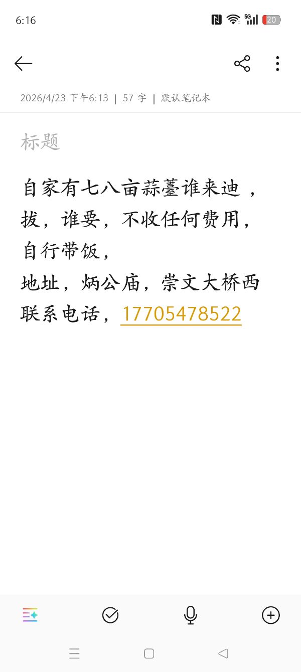 | 自家有七八亩蒜薹谁来迪 ,拔,谁要,不收任何费用, 自行带饭, 地址,炳公庙,崇文大桥西 联系电话, | ||