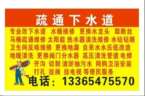| 疏通下水道 马桶疏通维修 水暖维修13365475570 | ||