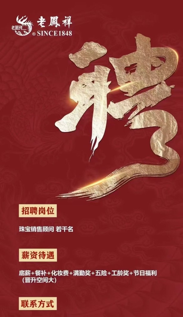 金乡老凤祥招聘招聘珠宝销售顾问,工作地点:中心街老凤祥